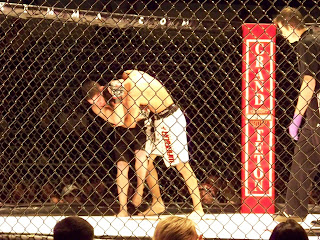 Our brother-in-law (Jared) is the ring doctor for the fights, so we get VIP ring-side seats. I think the worst injury last night was a broken nose, so Dr. Morton just got to sit back and enjoy watching the fights. The cage fights come to town every three months. We're waiting with bated breath for the next round of fighters...